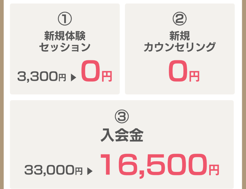 体験レッスン 0円 0円 3,300円 0円 3,000円