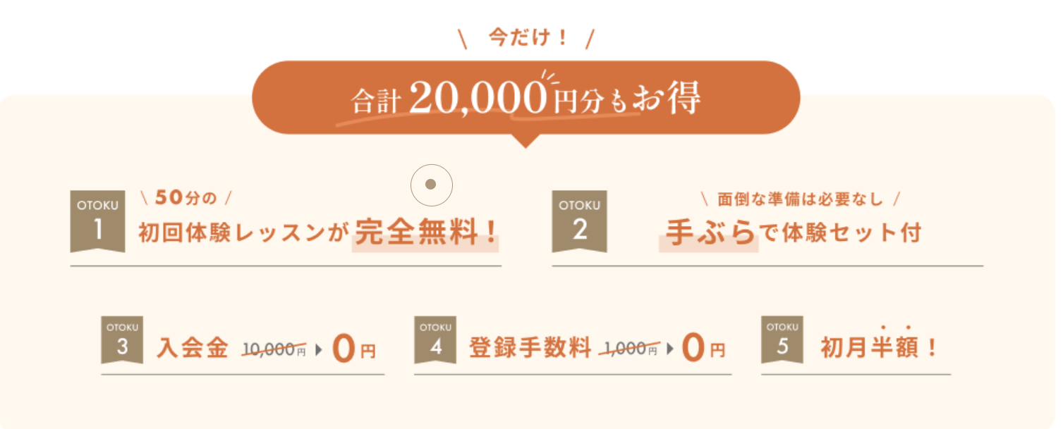 | 体験レッスン | なし | 0円 | 4,980円 | なし | 4,000円~ |