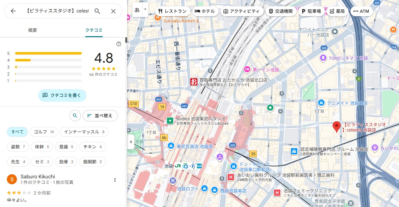 ピラティススタジオ「セレスティア池袋店」は、初心者でも安心して通えると口コミで高評価を得ています。