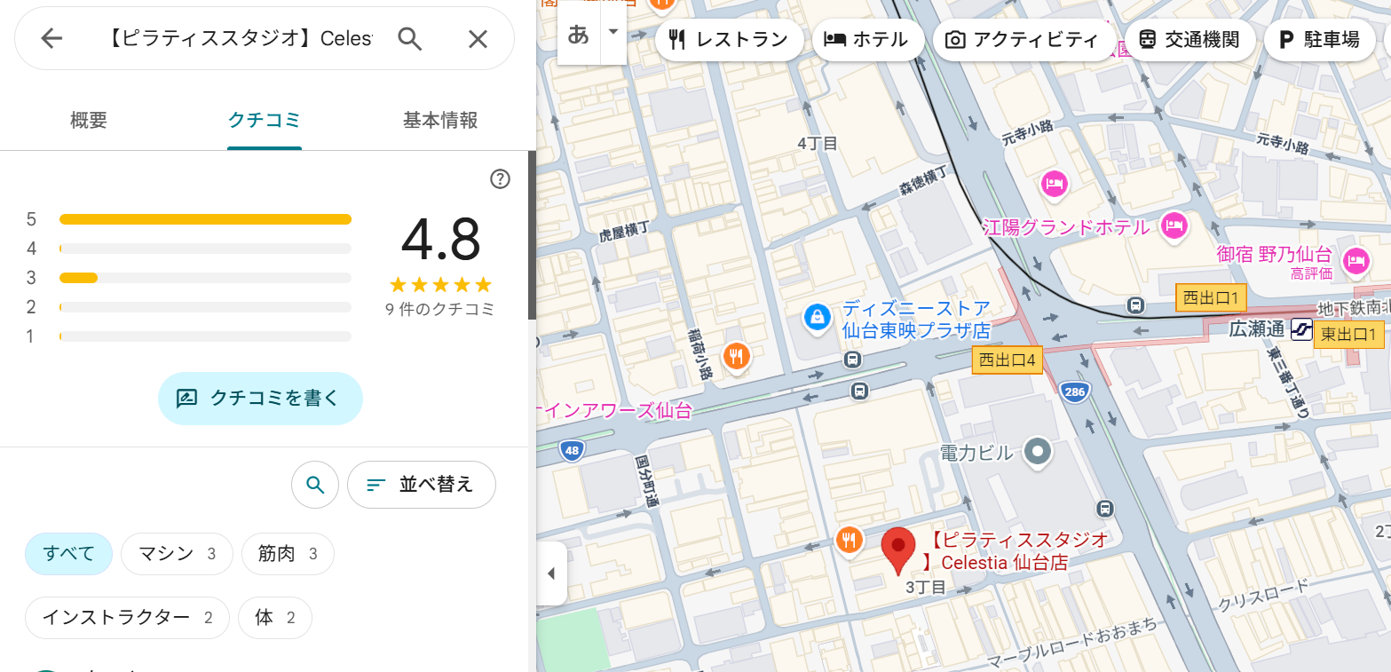 ピラティススタジオ セレスティア 仙台の良い口コミ