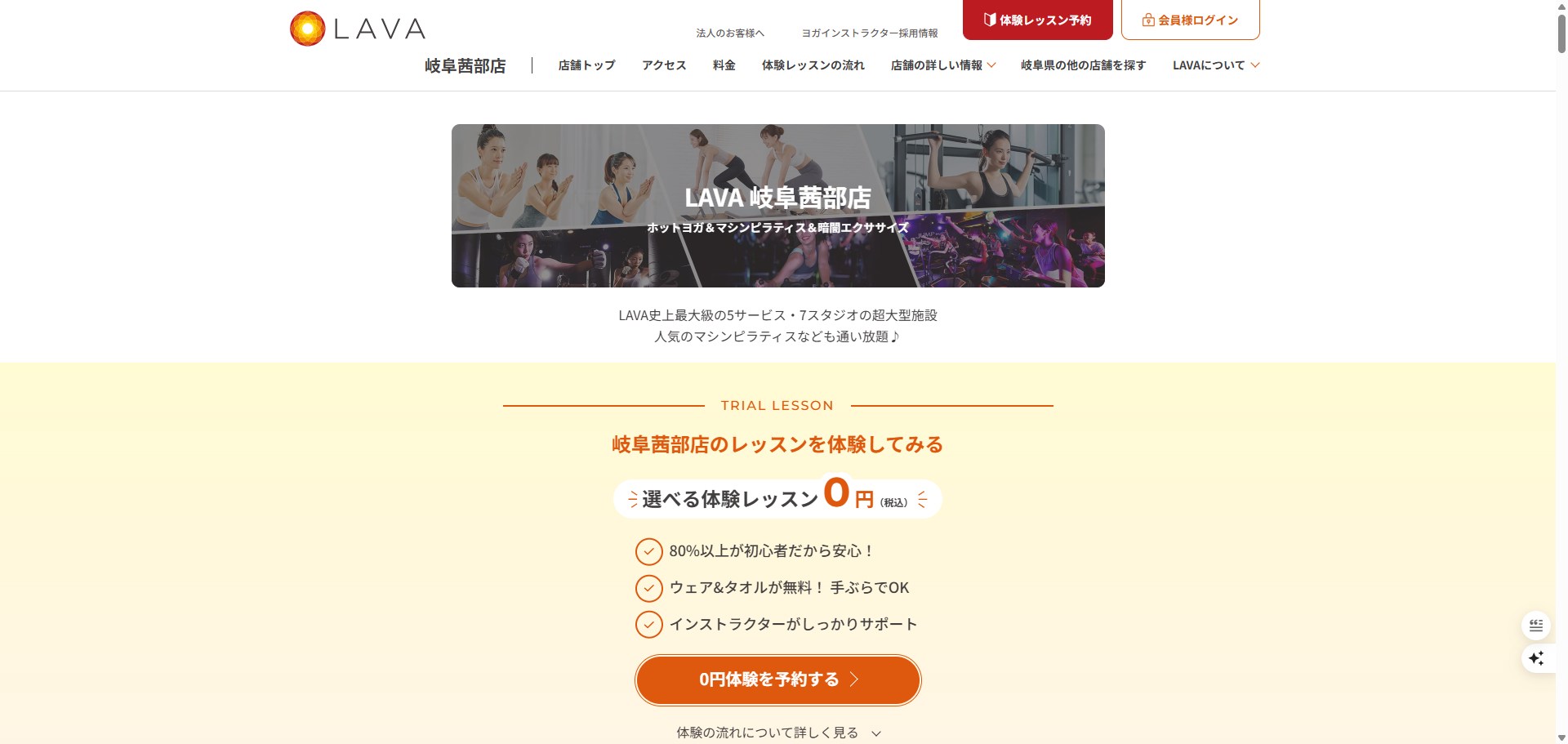| LAVA 岐阜茜部店 | ロイブ 岐阜店 | スタジオリベラ 岐阜 | Coconaヨガスタジオ | モアブレス | |