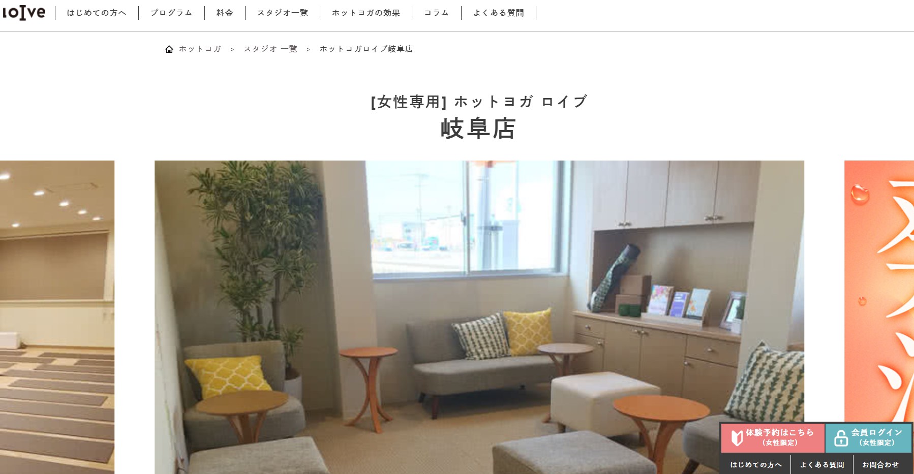 ロイブ岐阜店は、カラフルタウン岐阜の別棟にある女性専用ホットヨガスタジオです。路面店で、目の前に無料駐車場があるため、車でのアクセスがしやすいのが特徴です。