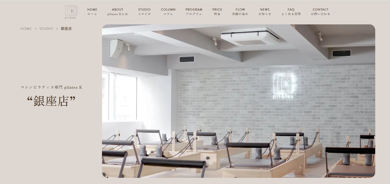 ピラティスK 銀座店は、女性専用のマシンピラティススタジオで、音楽に合わせて楽しく身体を動かす「エンタメ系ピラティス」が特徴です。