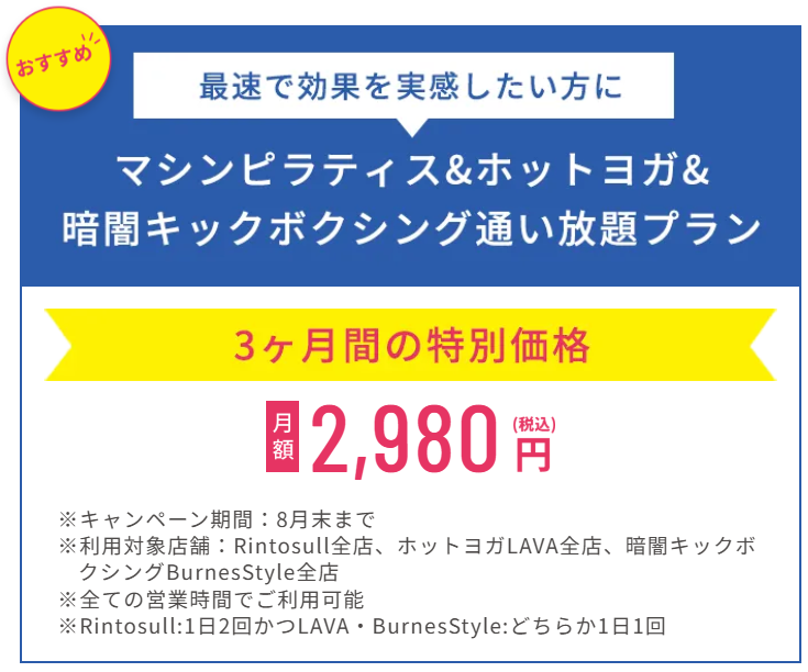 月4回のプランでは、「Rintosull 広島八丁堀店」が、比較的安く提供しています。