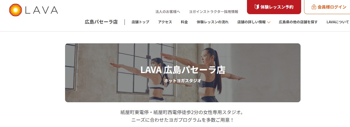 LAVA 広島パセーラ店 | ロイブ 広島店(イオンモール広島府中) | HOT STONE SPA surYOGA 広島三川町店 | Yoga&ホリスティックセラピー Karuna | COCONOHA東深津店 | |