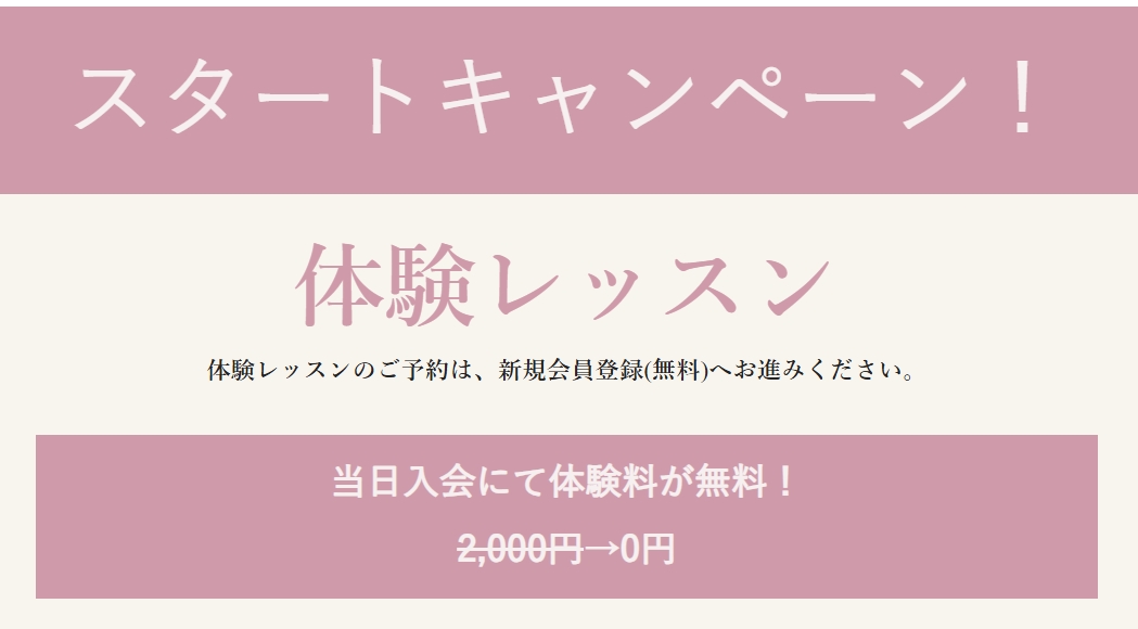 初回限定で500〜1,000円程度の体験料金が設定されている場合が多く、キャンペーン時には無料になることもあります。