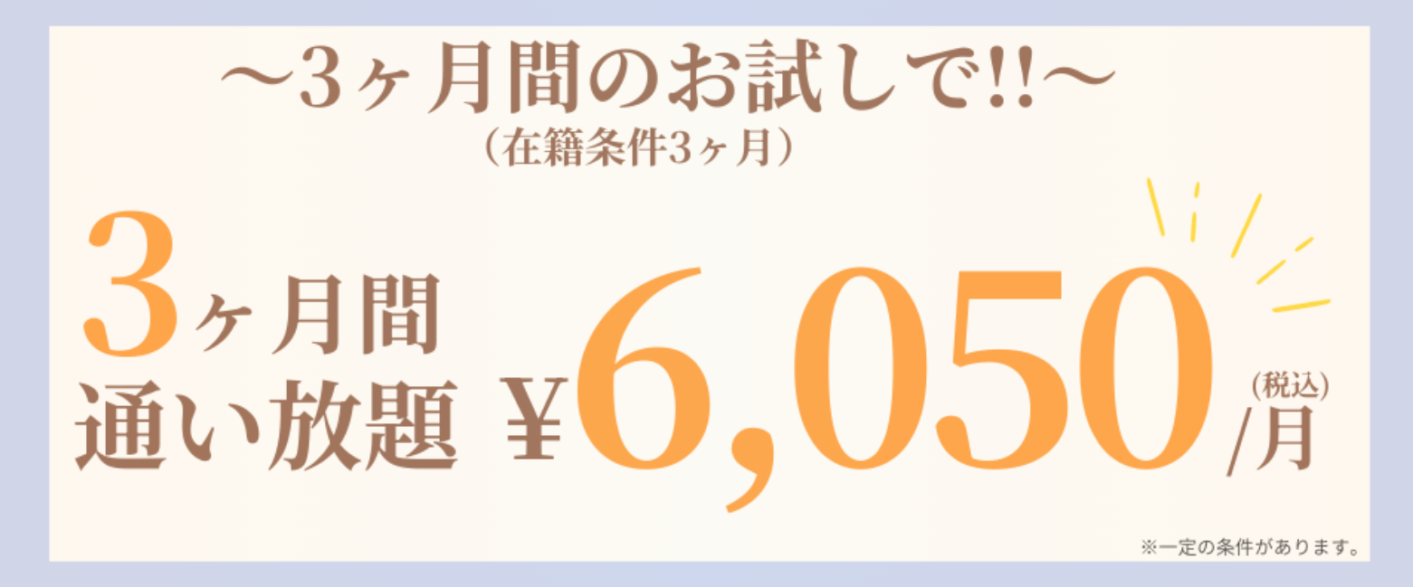 初回限定で500〜1,000円程度の体験料金が設定されている場合が多く、キャンペーン時には無料になることもあります。
