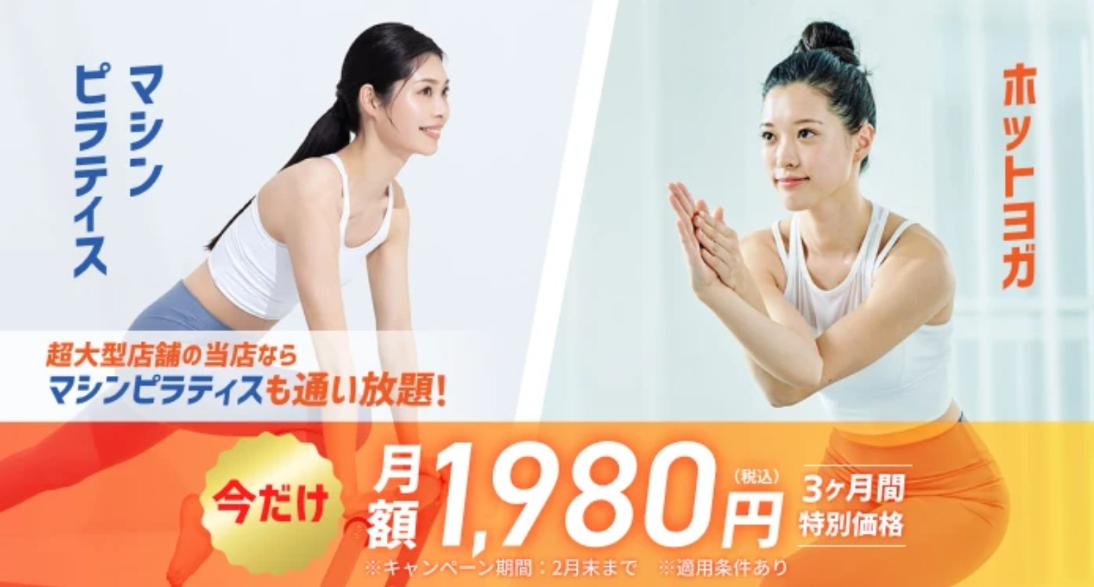 | 特徴 | レッスン数が 豊富 ヨガ以外のプログラムも受けられる |