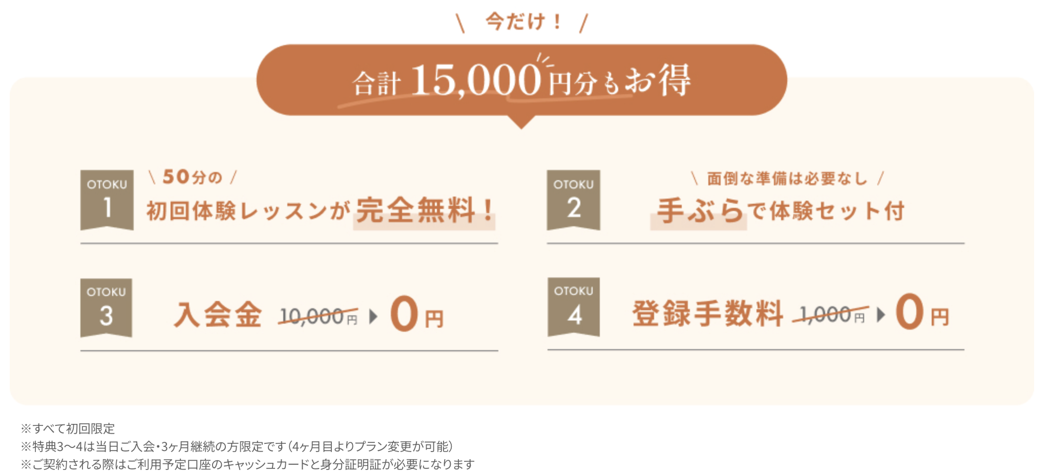 □ レッスン料以外の費用(初期費用・事務手数料)が明確