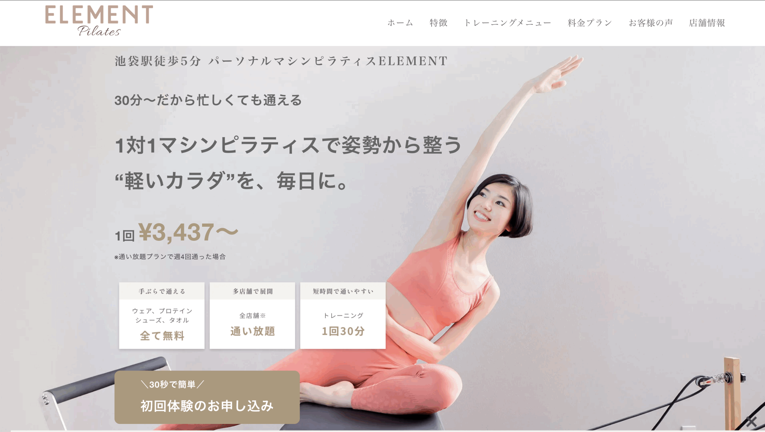 ELEMENT 池袋店は、定額制で通い放題のマシンピラティススタジオです。