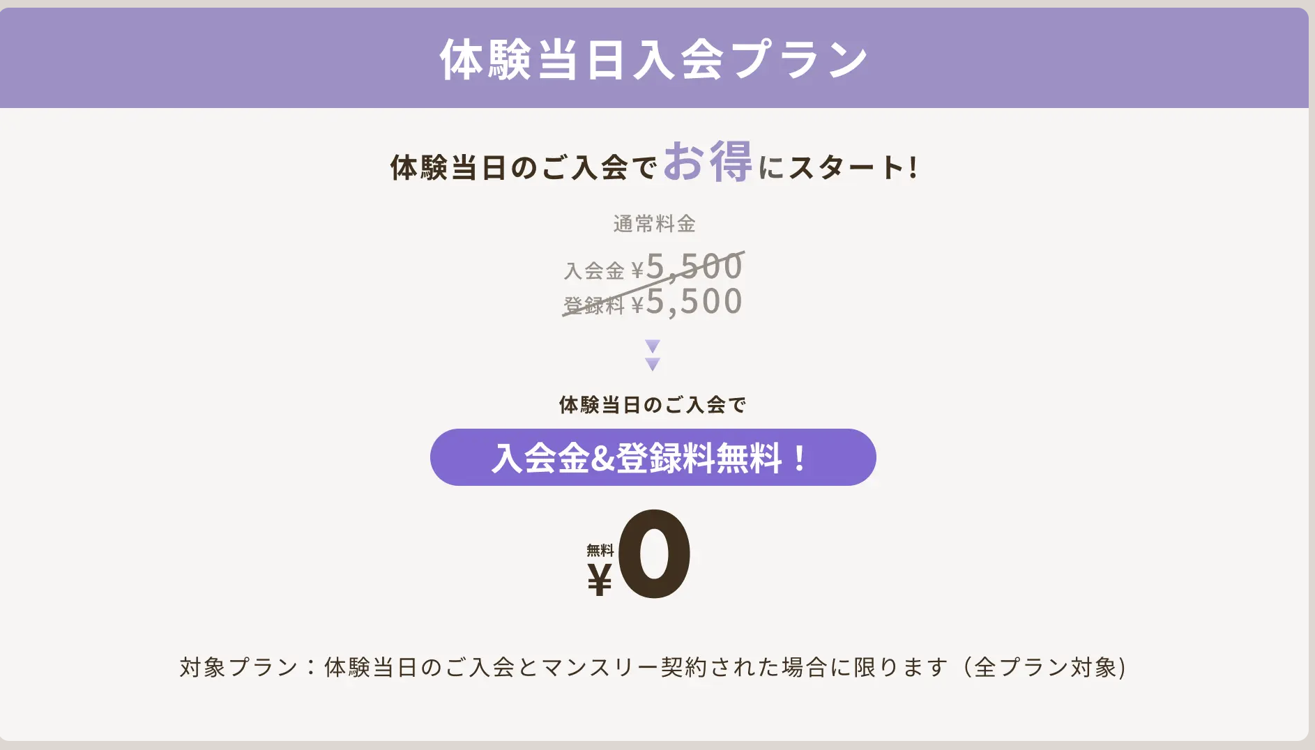 初期費用 33,000円(入会金)※初回体験後入会で半額