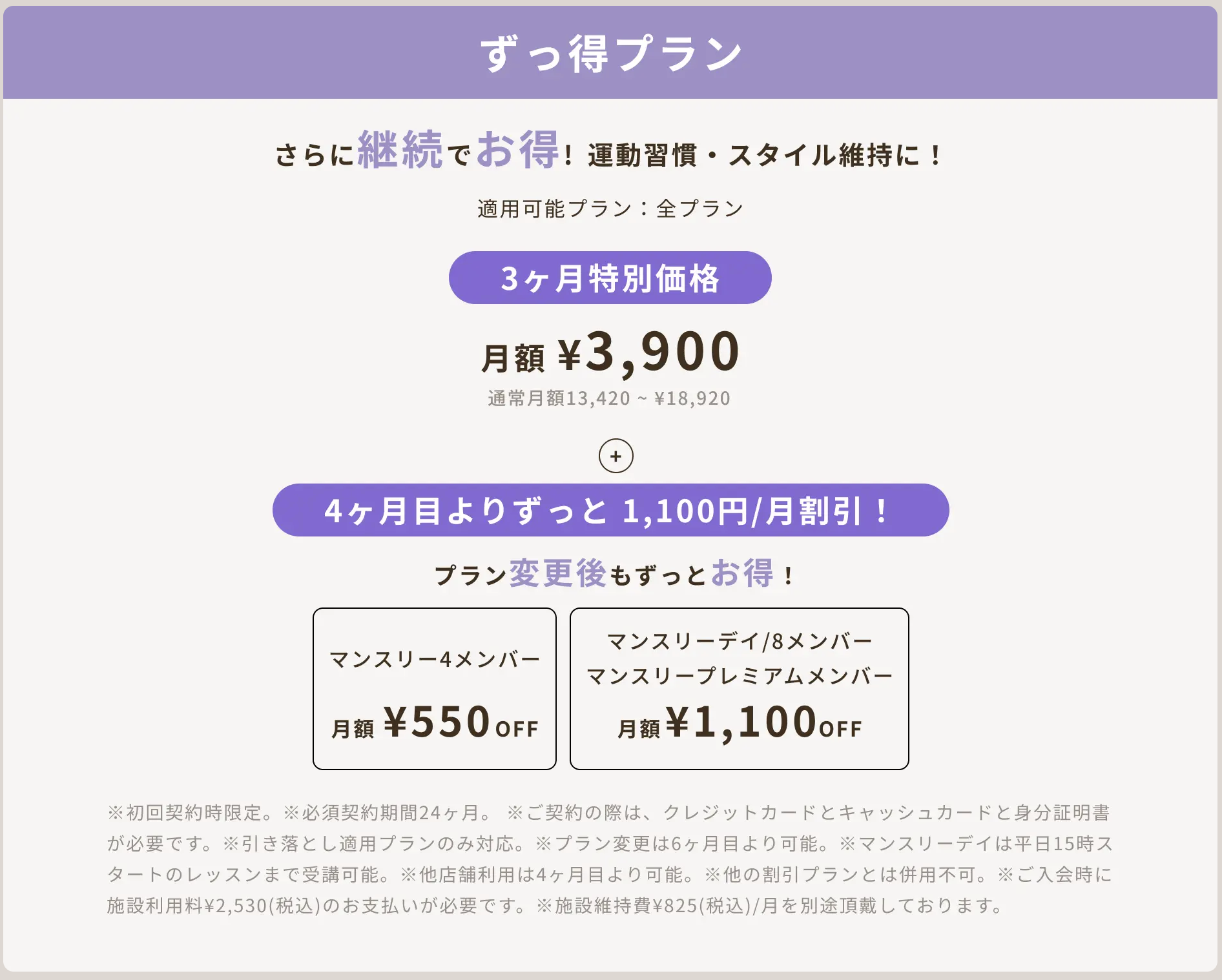 「マシンピラティスは高くて手が出せない」という方でも、安心して通えるように、業界最安値クラスの料金を実現しています。