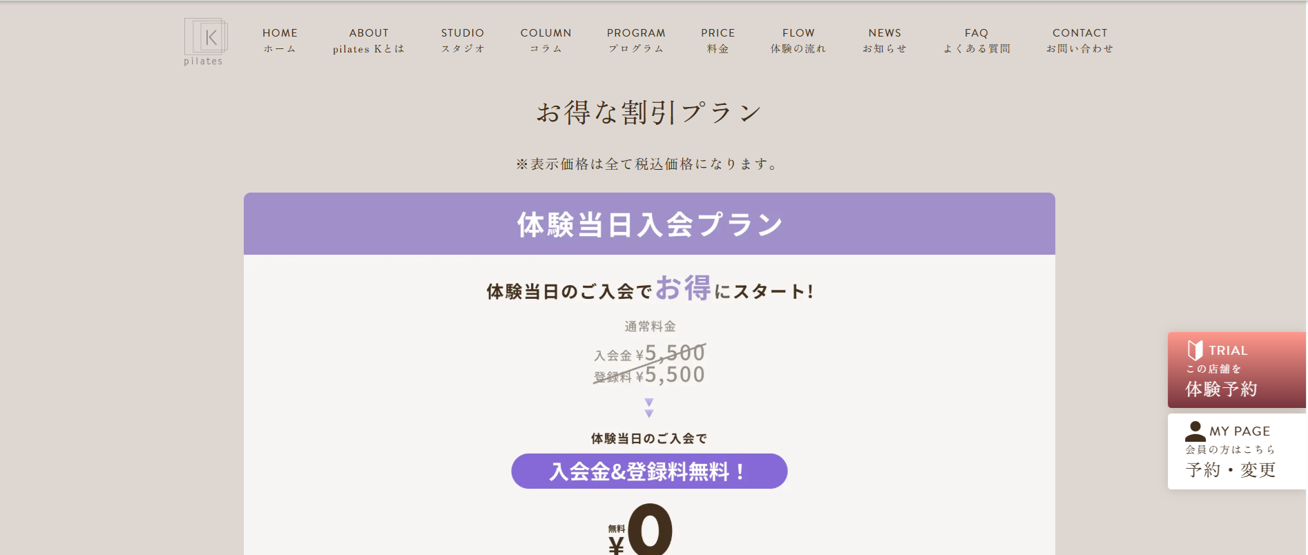 ウエアやシューズ、タオルは無料でレンタルでき、レッスン後にはプロテインのサービスもあるため、お得にピラティスを楽しみたい方におすすめです。