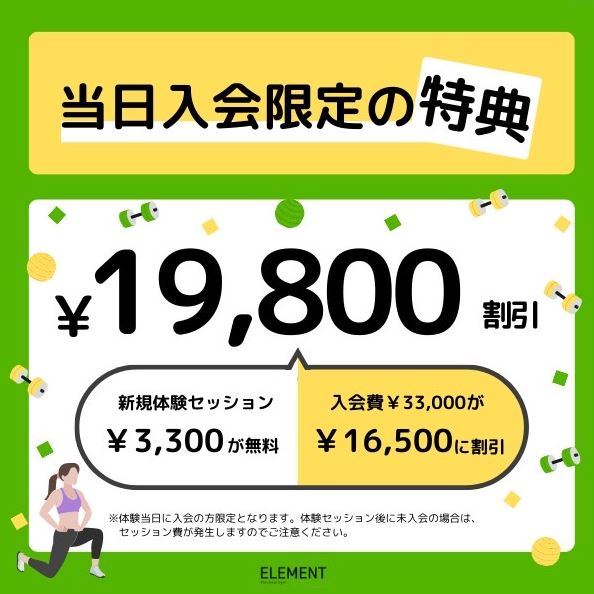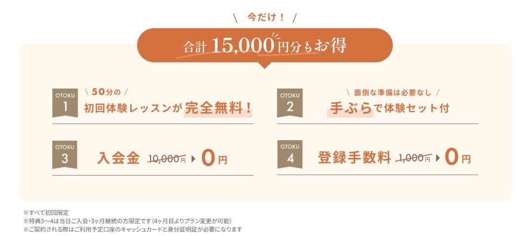 ※1すべて初回限定。当日ご入会・3ヶ月継続の方限定です(4ヶ月目よりプラン変更が可能)。