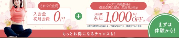 体験:0円 初期費用:10000円 →当日入会で0円 月会費:8800円~ |