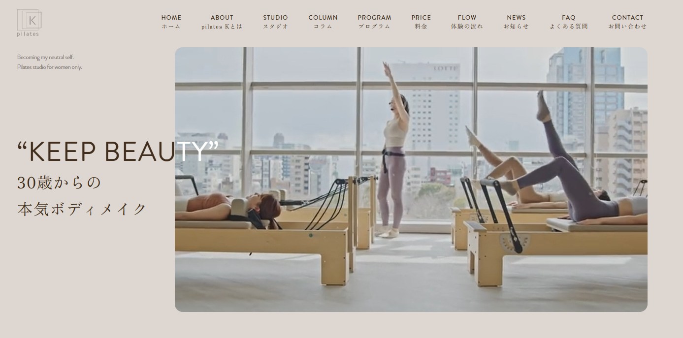 ピラティスKは、「地味・きつい」という従来のイメージを覆し、音楽に合わせて楽しく続けられるマシンピラティスを提供するスタジオです。