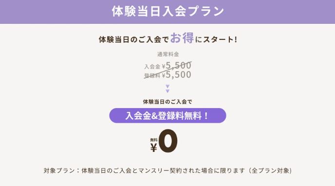 | 初期費用 | 10,000円(体験当日入会で無料) |
