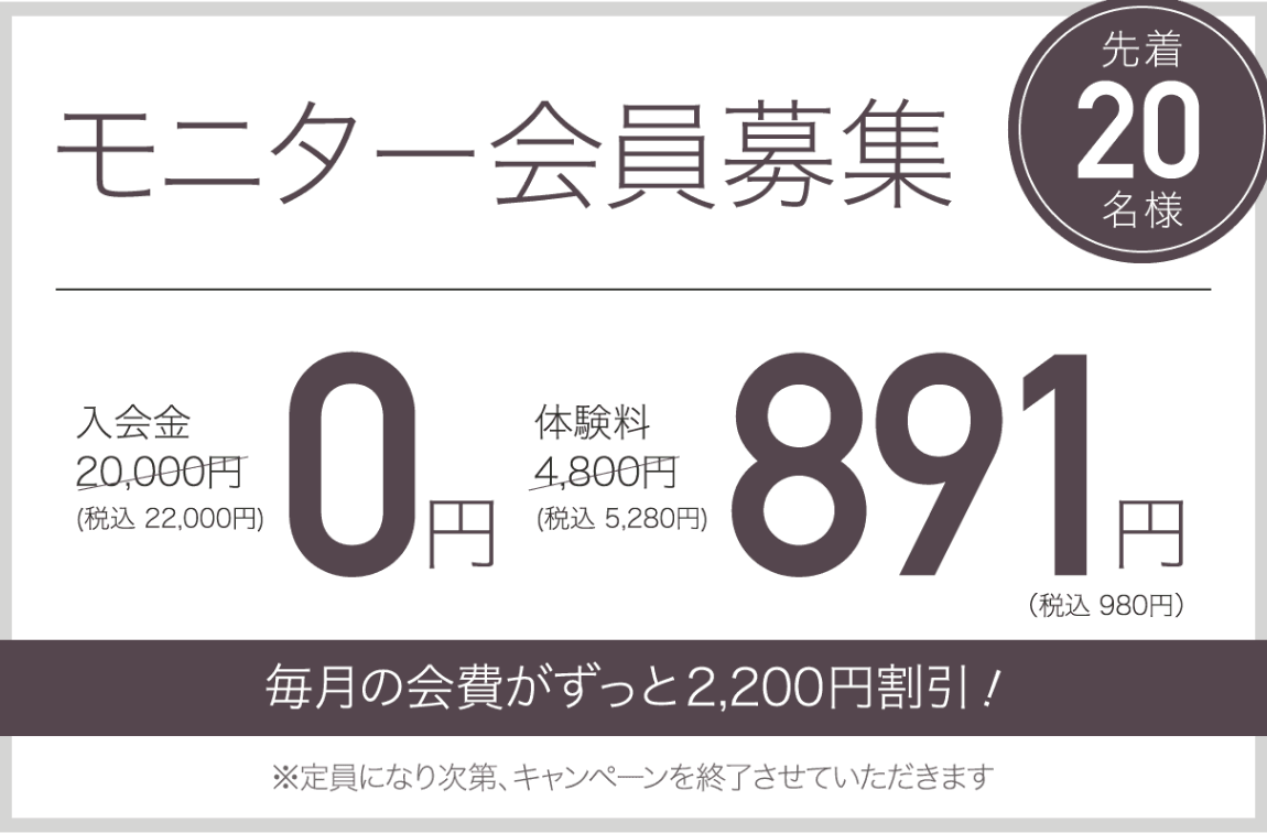 初期費用 | 30,000円(体験当日入会で16,500円) |