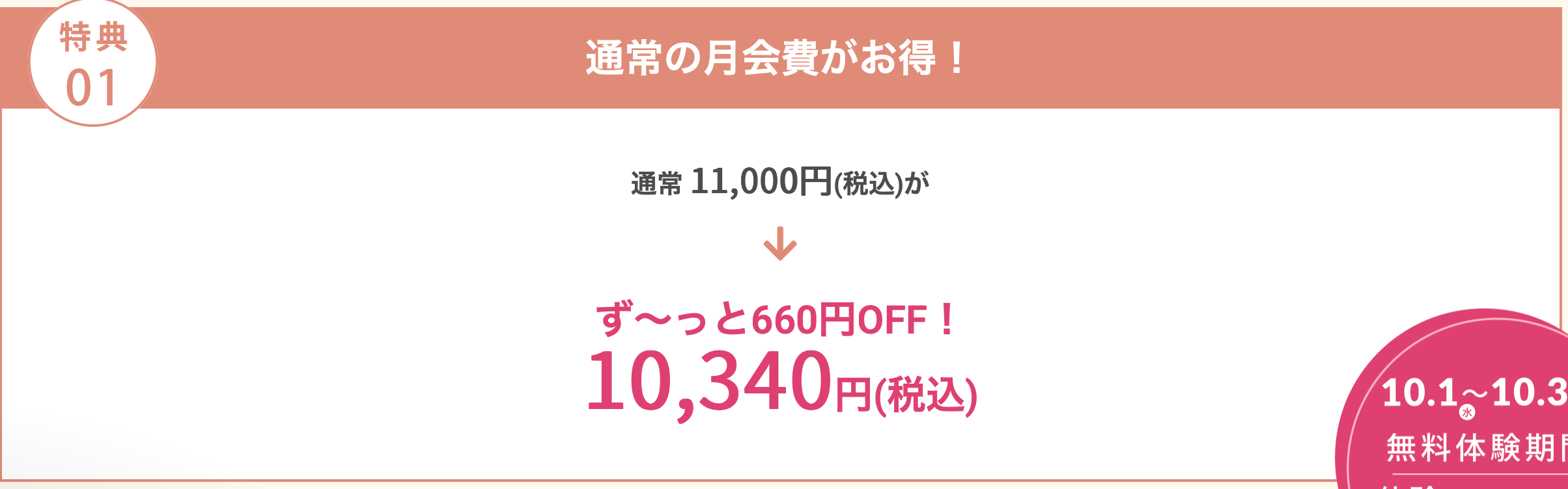 初期費用 | 33,000円(入会金)※10月31日まで無料 |
