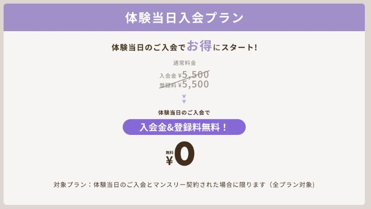 ※1すべて初回限定。当日ご入会・3ヶ月継続の方限定です(4ヶ月目よりプラン変更が可能)。