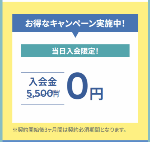 入会金 | 5,000円 | 5,500円 | 22,000~33,000円 | 5,500円 | 22,000円 |