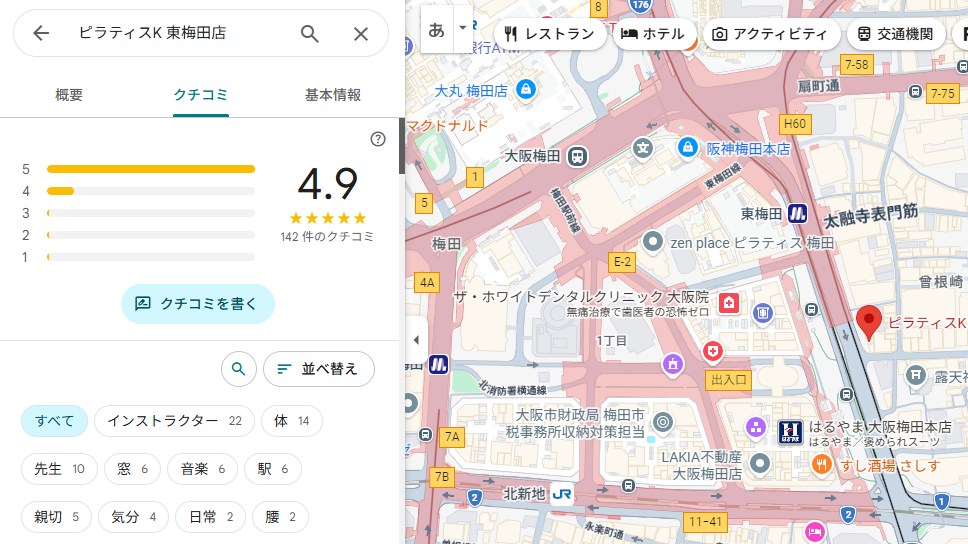 結論から言うと、ピラティスK東梅田店は口コミ評価が非常に高く、初心者でも安心して通いやすいスタジオだと分かりました。