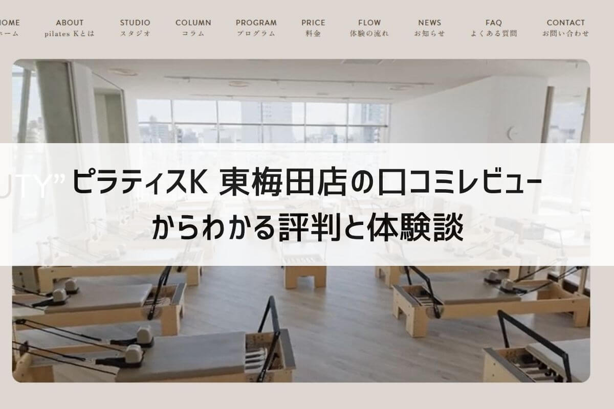 この記事では、実際の口コミをもとに、ピラティスK東梅田店の魅力・気になる点・どんな人におすすめかを分かりやすく整理しています。