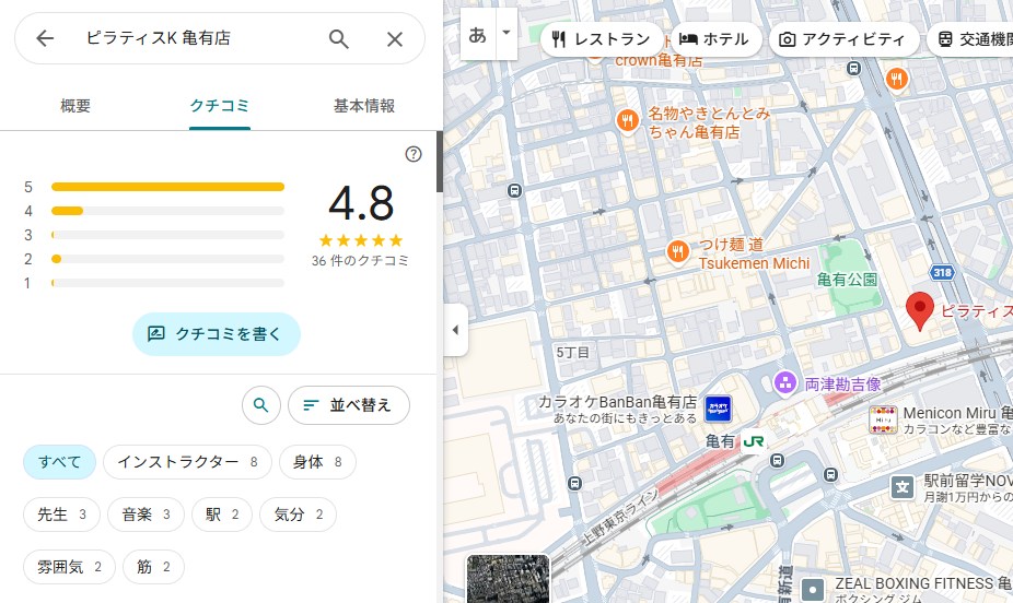 結論から言うと、ピラティスK亀有店は口コミ評価が非常に高く、初心者でも安心して通いやすいスタジオだと分かりました。