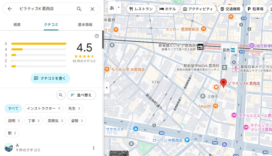 結論から言うと、ピラティスK葛西店は口コミ評価が非常に高く、初心者でも安心して通いやすいスタジオだと分かりました。