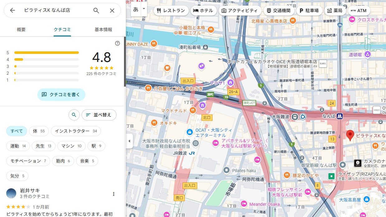 結論から言うと、ピラティスKなんば店は口コミ評価が非常に高く、初心者でも安心して通いやすいスタジオだと分かりました。