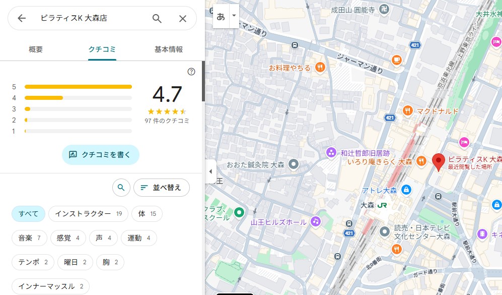 結論から言うと、ピラティスK大森店は口コミ評価が非常に高く、初心者でも安心して通いやすいスタジオだと分かりました。