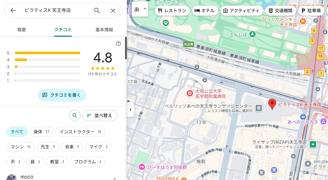 結論から言うと、ピラティスK天王寺店は口コミ評価が非常に高く、初心者でも安心して通いやすいスタジオだと分かりました。