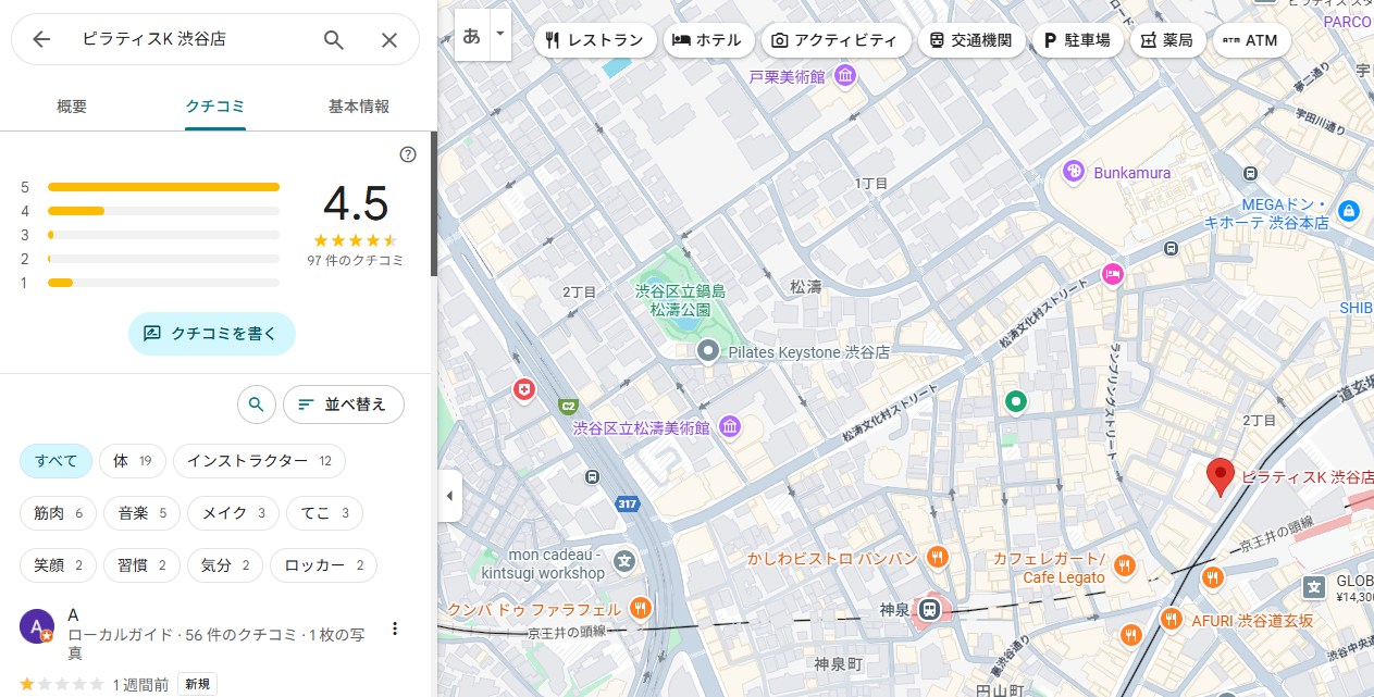 結論から言うと、ピラティスK渋谷店は口コミ評価が非常に高く、初心者でも安心して通いやすいスタジオだと分かりました。