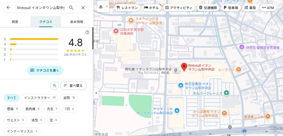 結論から言うと、Rintosull(リントスル)イオンタウン山梨中央店は口コミ評価が非常に高く、初心者でも安心して通いやすいスタジオだと分かりました。
