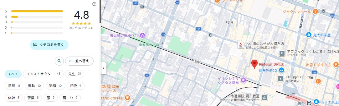 結論から言うと、Rintosull(リントスル)調布店は口コミ評価が非常に高く、初心者でも安心して通いやすいスタジオだと分かりました。