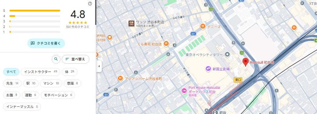 結論から言うと、Rintosull(リントスル)初台店は口コミ評価が非常に高く、初心者でも安心して通いやすいスタジオだと分かりました。