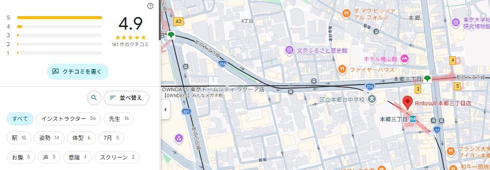 結論から言うと、Rintosull(リントスル)本郷三丁目店は口コミ評価が非常に高く、初心者でも安心して通いやすいスタジオだと分かりました。