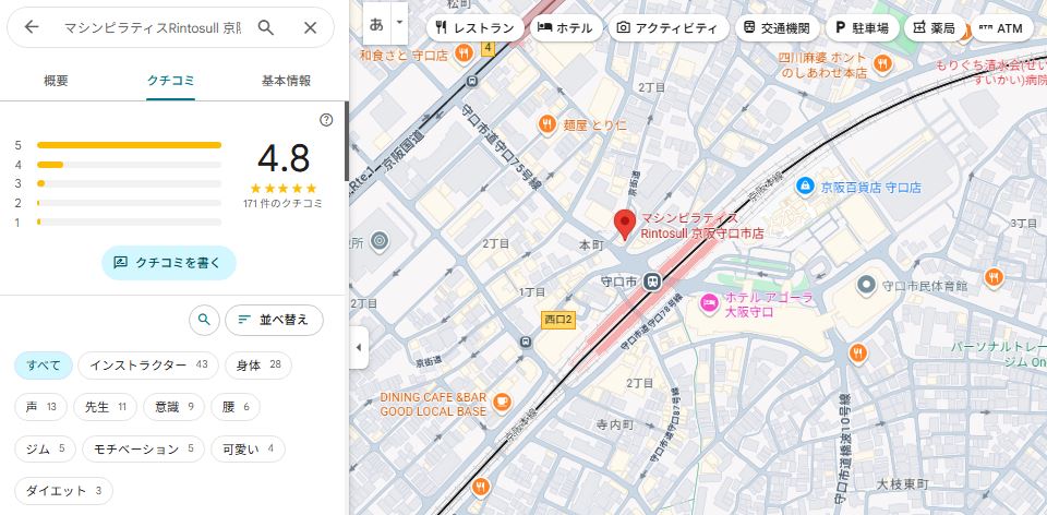 結論から言うと、Rintosull(リントスル)京阪守口市店は口コミ評価が非常に高く、初心者でも安心して通いやすいスタジオだと分かりました。