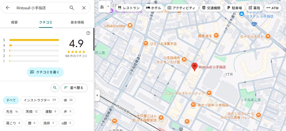 結論から言うと、Rintosull(リントスル)小手指店は口コミ評価が非常に高く、初心者でも安心して通いやすいスタジオだと分かりました。
