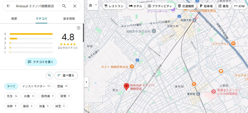 結論から言うと、Rintosull(リントスル)ミナノバ相模原店は口コミ評価が非常に高く、初心者でも安心して通いやすいスタジオだと分かりました。