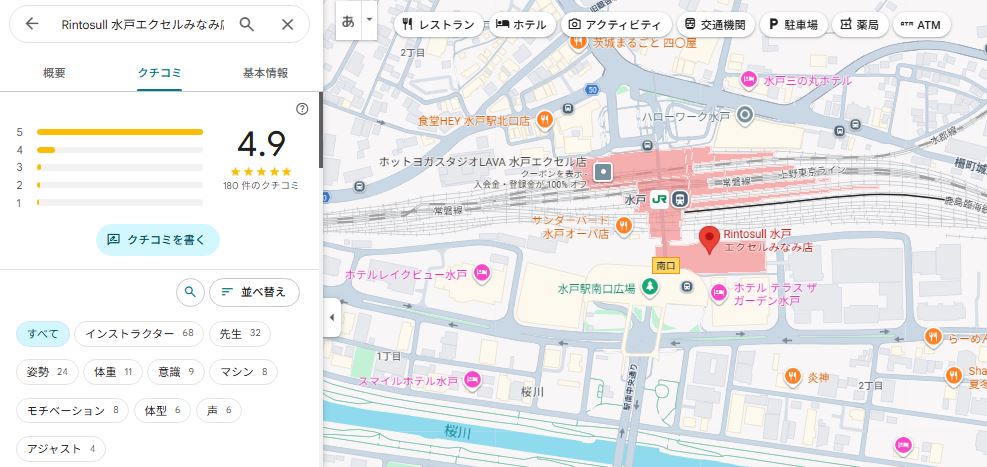 結論から言うと、Rintosull(リントスル)水戸エクセルみなみ店は口コミ評価が非常に高く、初心者でも安心して通いやすいスタジオだと分かりました。
