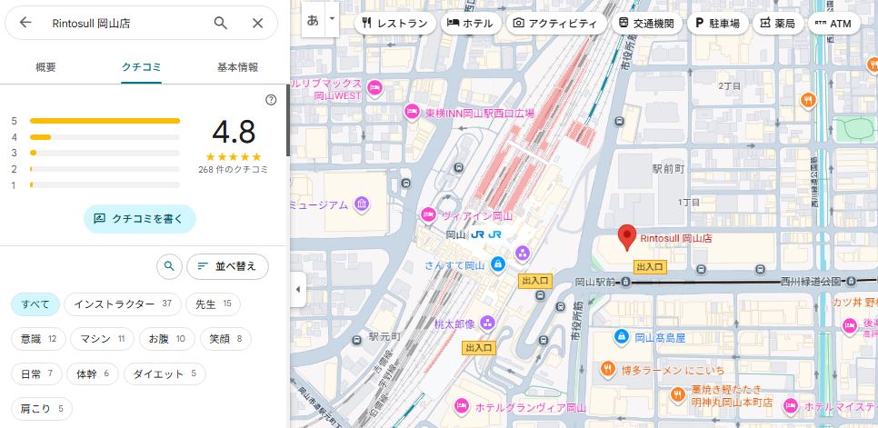 結論から言うと、Rintosull(リントスル)岡山店は口コミ評価が非常に高く、初心者でも安心して通いやすいスタジオだと分かりました。