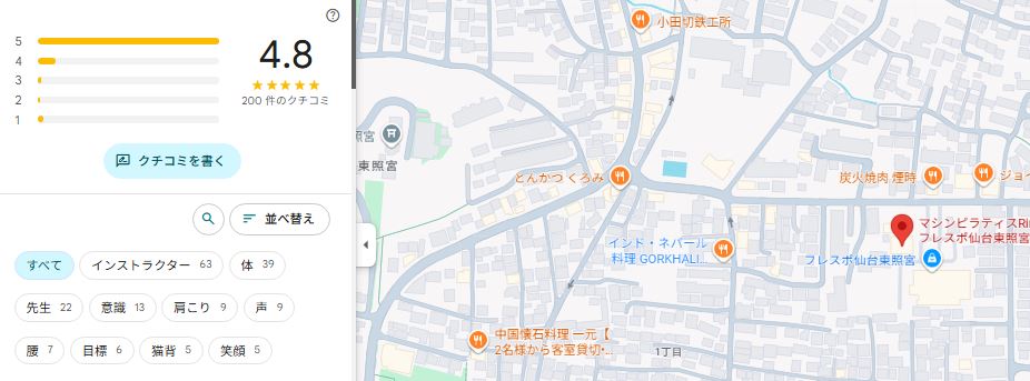 googleマップで口コミを調査したところ、200件の投稿が寄せられており内容も平均4.8と非常に高評価です。(2026年2月18日調査時点)