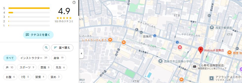 結論から言うと、Rintosull(リントスル)田無店は口コミ評価が非常に高く、初心者でも安心して通いやすいスタジオだと分かりました。