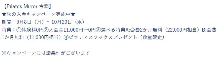 病院の勧めで通い始めました。レッスン時間も人数もミラーがあることも私にはとても合っていて以前通っていた大人数のマシンピラティスよりもとてもわかり易くこの先も続けていきたいです。