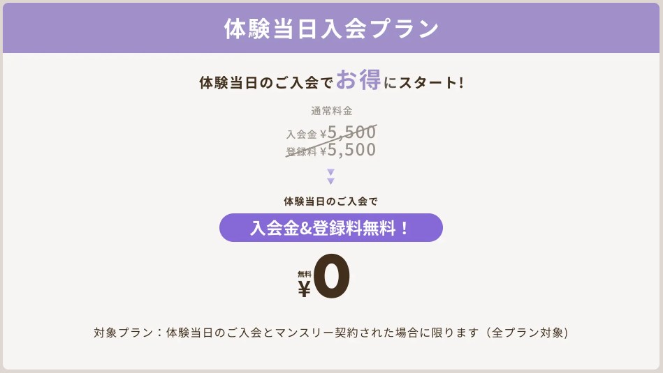 | 入会金 | 5,500円(キャンペーン適用で無料) |