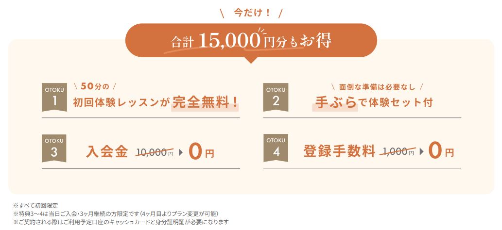 | 体験レッスン | 3,300円(キャンペーン適用で無料) |