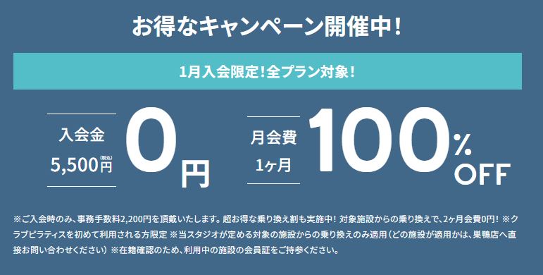 ※体験当日にご入会の方限定CPになります。 ※3カ月の継続が必要です。4カ月目よりプラン変更の申し込みが可能です。 ※ご契約される際はご利用予定口座のキャッシュカードと身分証明書が必要です。 ※グループレッスンはすべてのコースで1日1回までのご利用が可能です。