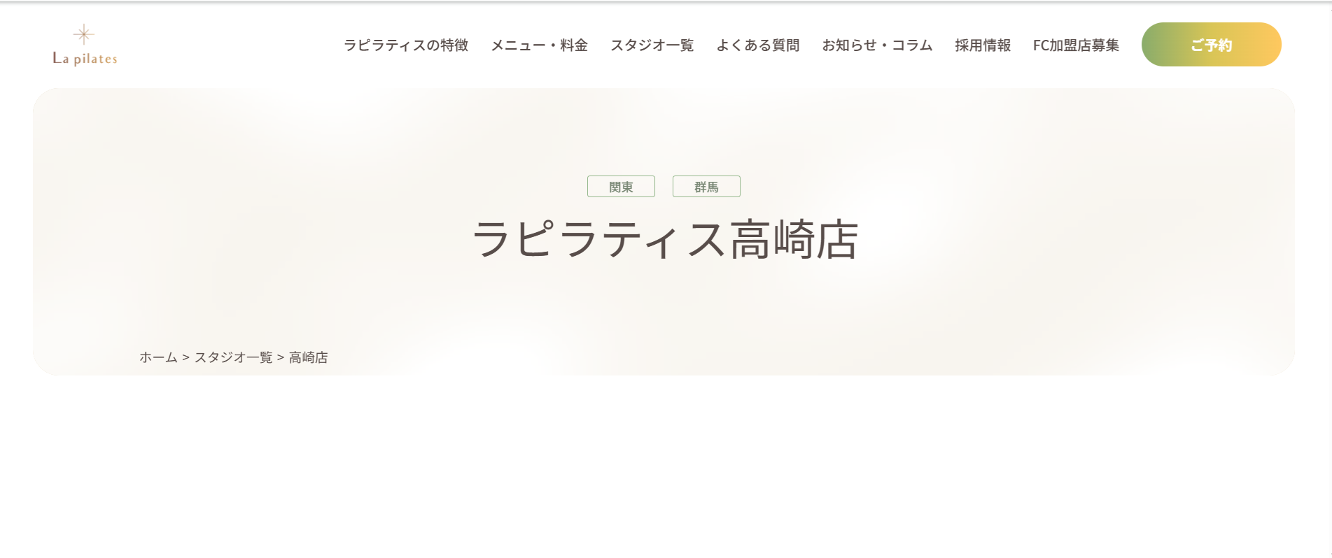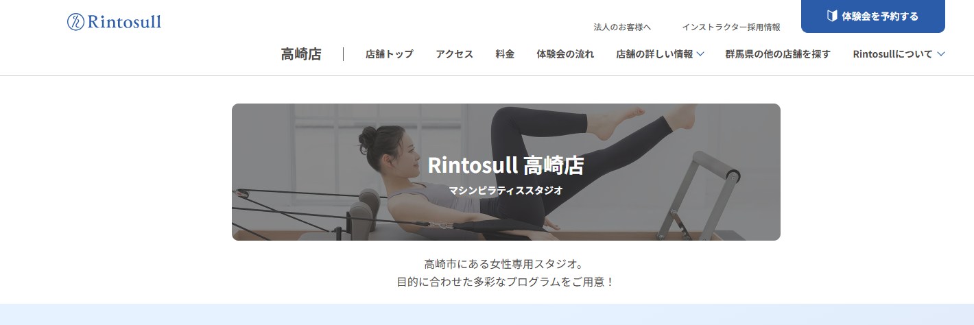 Rintosull 高崎店 | ピラティスK 高崎店 | La pilates 高崎店 | DEP高崎店 | Pilates Studio Arte | |