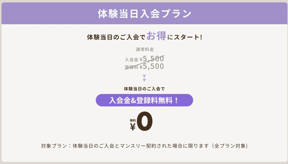 入会金 | 5,000円 | 5,500円 | 10,000円 | 0円 | 10,000円 |